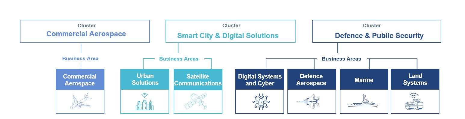 Our Domains | Smart Utilities • Mobility and Infrastructure • Satellite Solutions • Digital Healthcare • Homeland Security • Land Defence Systems • Naval Intelligence and Shipbuilding • Aerostructures and Systems and more... |